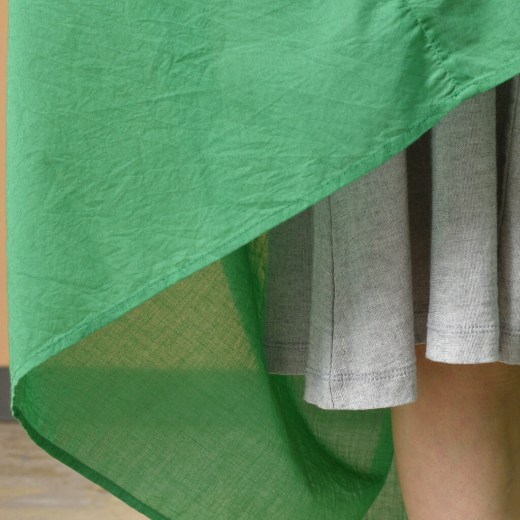 ハイゲージのオーガニックコットン糸を使用した、軽やかで涼しく着られるシリーズです。今年の夏は気分を変えて、発色の良いグリーンもチョイス。上質な生地をピンタックだけでシルエットを作り上げた、贅沢な一着です。